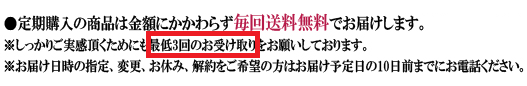 黒糖抹茶青汁寒天ジュレ定期コースは最低3回の受け取りが必要になります。